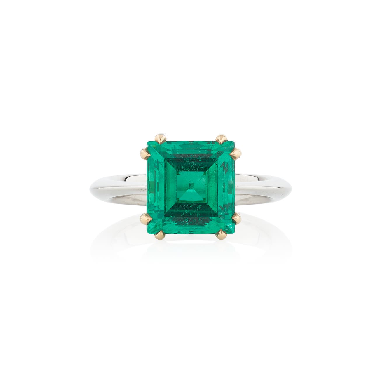Set with a step-cut emerald weighing 3.69 carats, size 51.