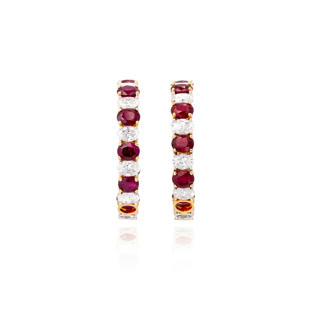 Each set with alternating oval rubies and diamonds, measuring approximately 27mm in diameter, post and butterfly fittings.
