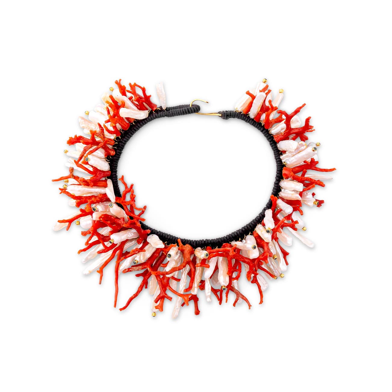 Coral, cultured pearl and sapphire necklace