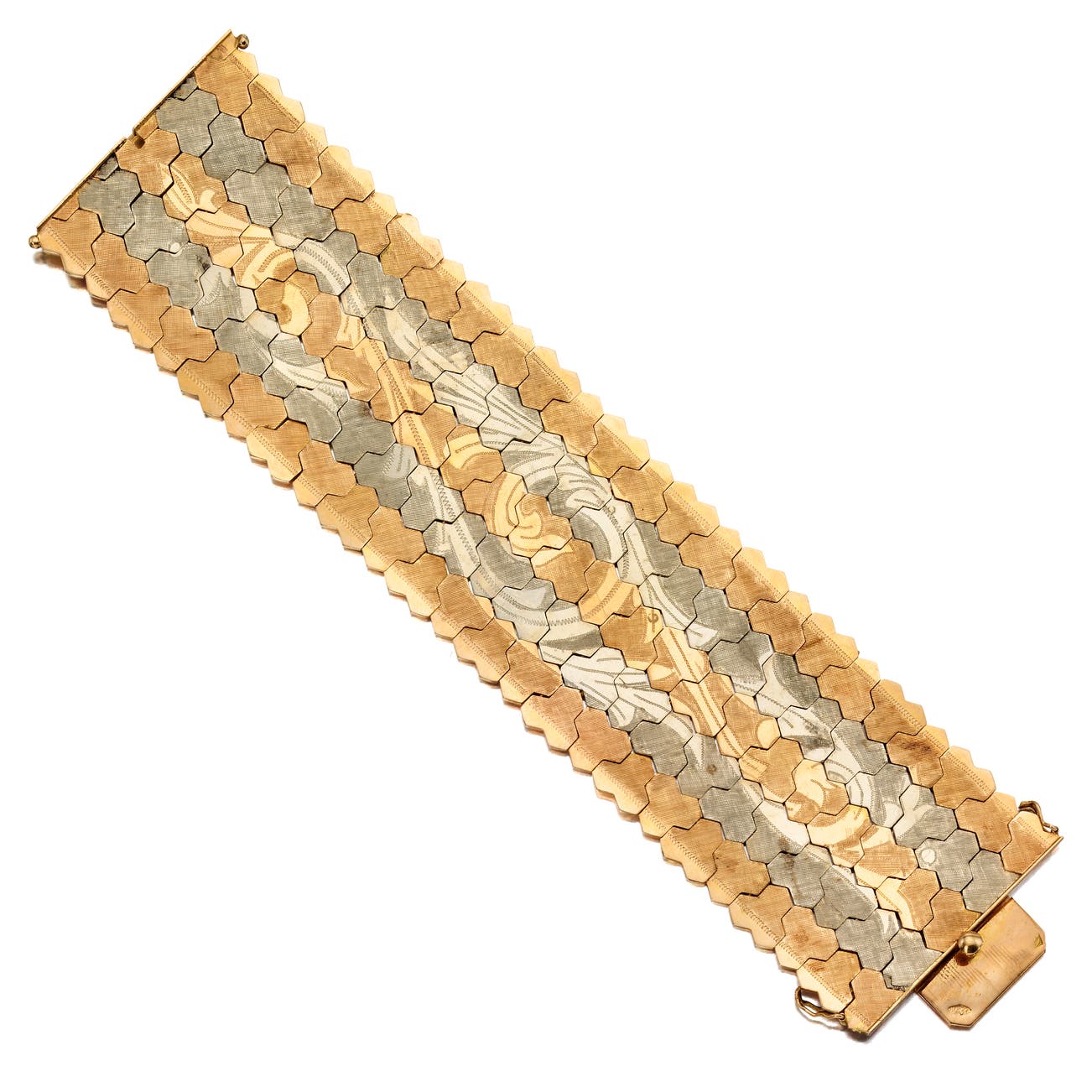 in 18k yellow and white gold, length approximately 7 3/8 inches.