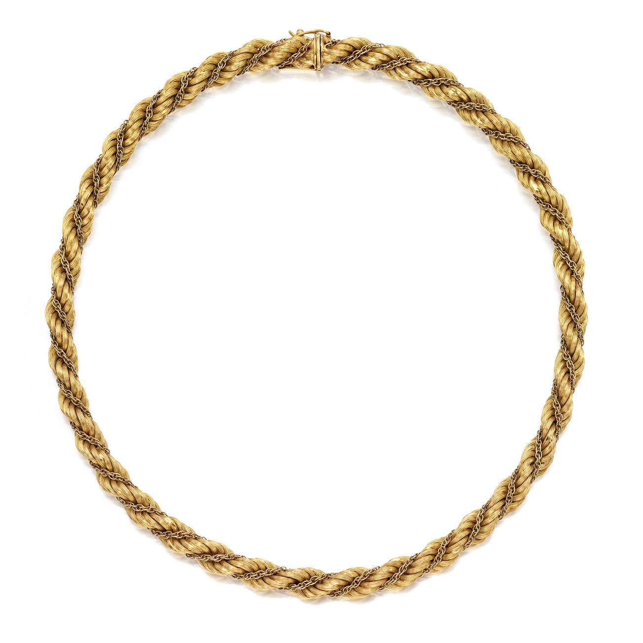 in 18k yellow gold, length approximately 17 1/4 inches.
