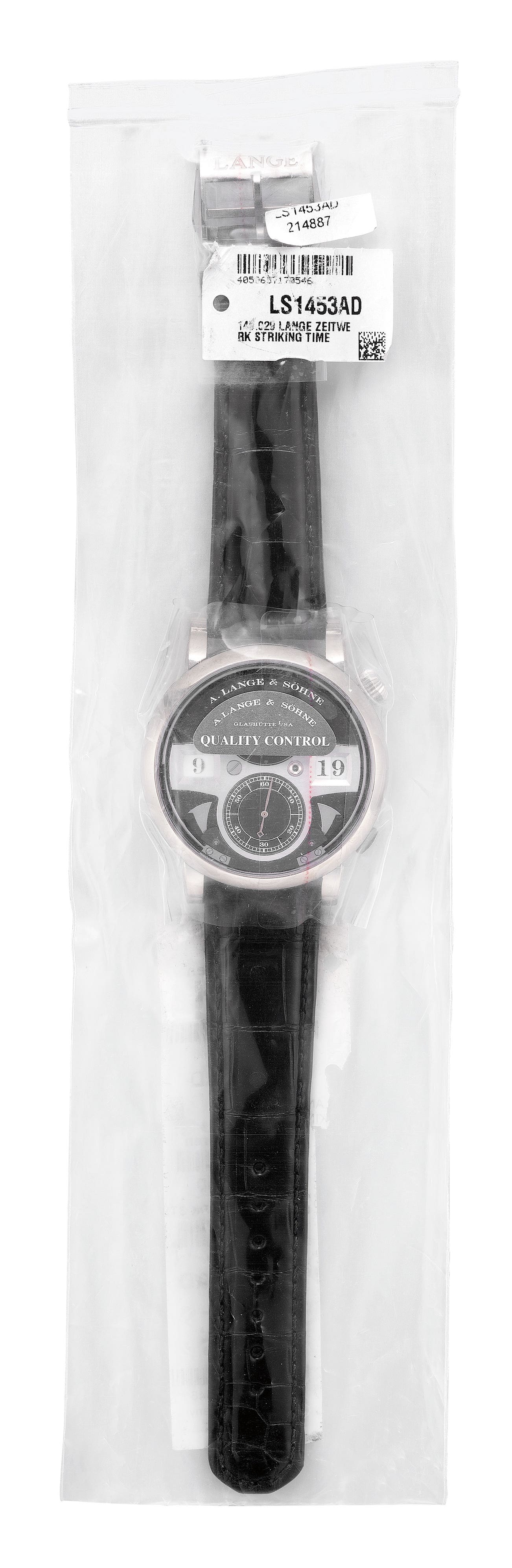 朗格,「Lange Zeitwerk, Striking Time」型號145.029,十分精細及罕有,18K白金腕錶,配自鳴報時、刻功能、跳字式數字視窗顯示和動力儲存,約2015年製。附原裝錶盒和原裝證書 原廠單封全新品