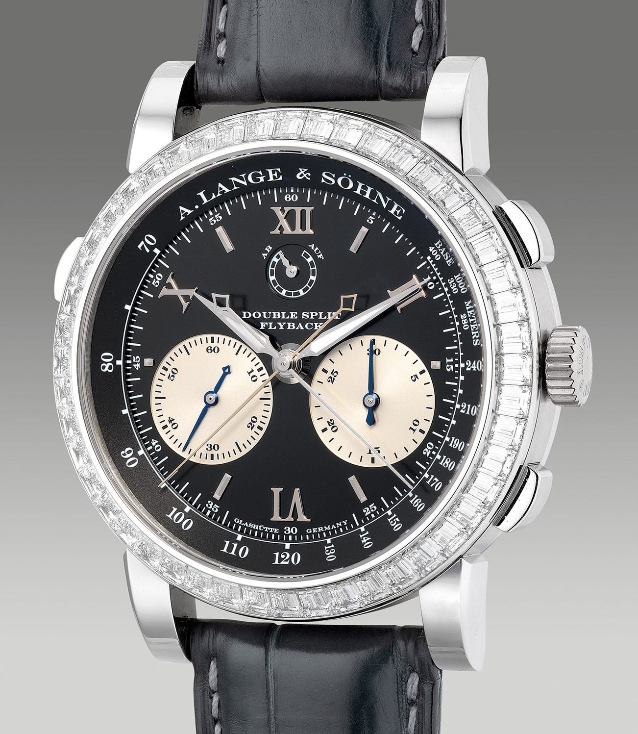 朗格,「Double Split」型號824.035,極度精細非常罕有,鉑金方鑽飛返追針計時腕錶,備夜光指針,2011年製。附原裝證書、錶盒