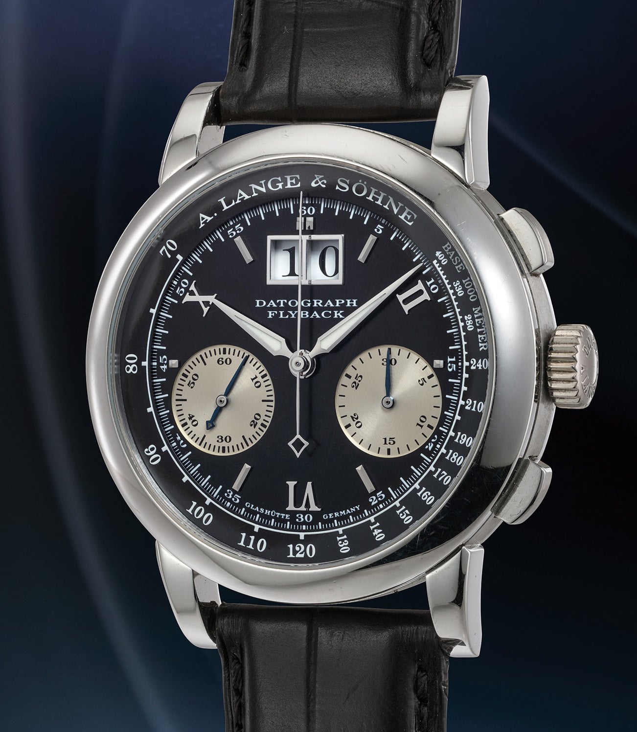 朗格,非常精細,鉑金飛返計時腕錶,備大型日期顯示。附保證書及錶盒