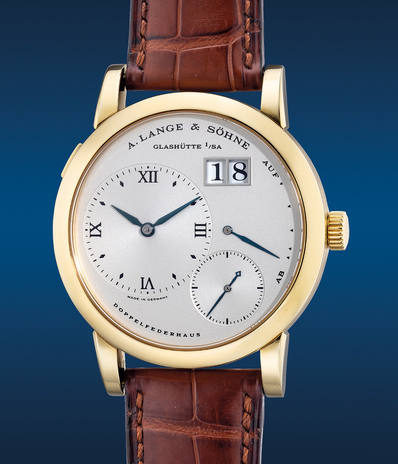 朗格,「Lange 1」型號101.022,精細罕有,黃金腕錶,備小秒針、動力儲備、日期顯示,約1999年製。附錶盒、原裝證書