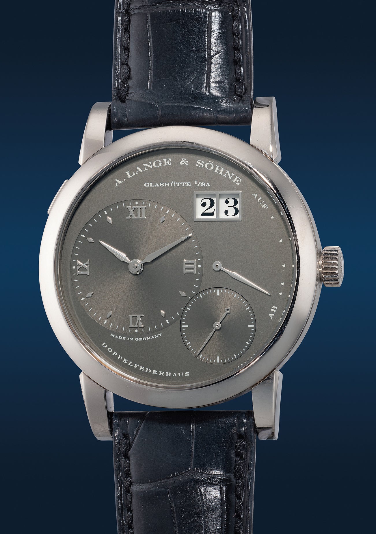 朗格,「Lange 1」型號 101.030,精細優雅,白金腕錶,備日期及動力儲存顯示,約2005年製。 附原裝證書、配件、錶盒