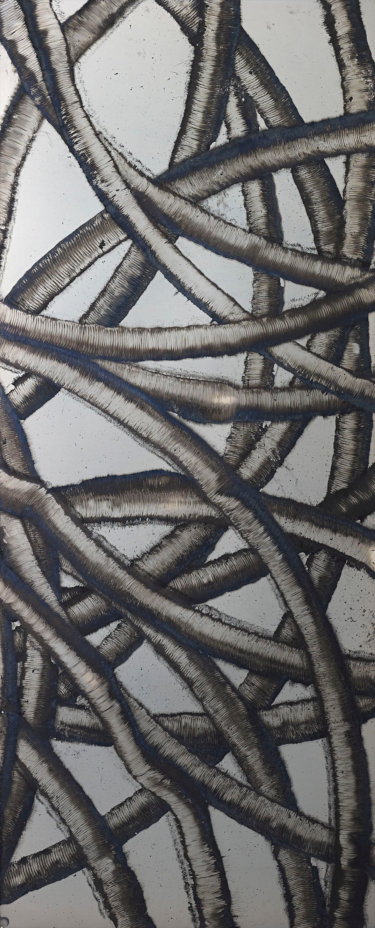 oil, acrylic and burnt rubber on aluminium