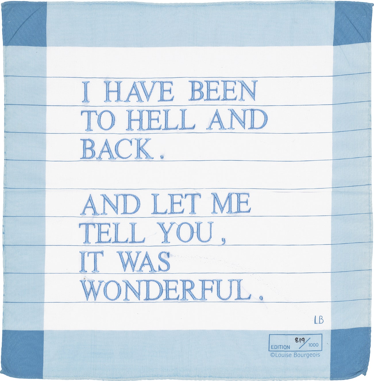 棉花草坪繡花手帕(折疊如出版所示)存於原裝紙質信封連印刷標題