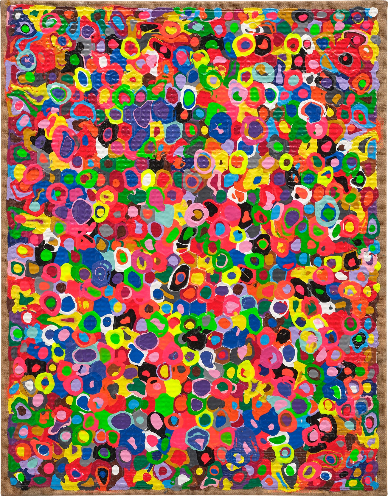 metallic net and acrylic on jute