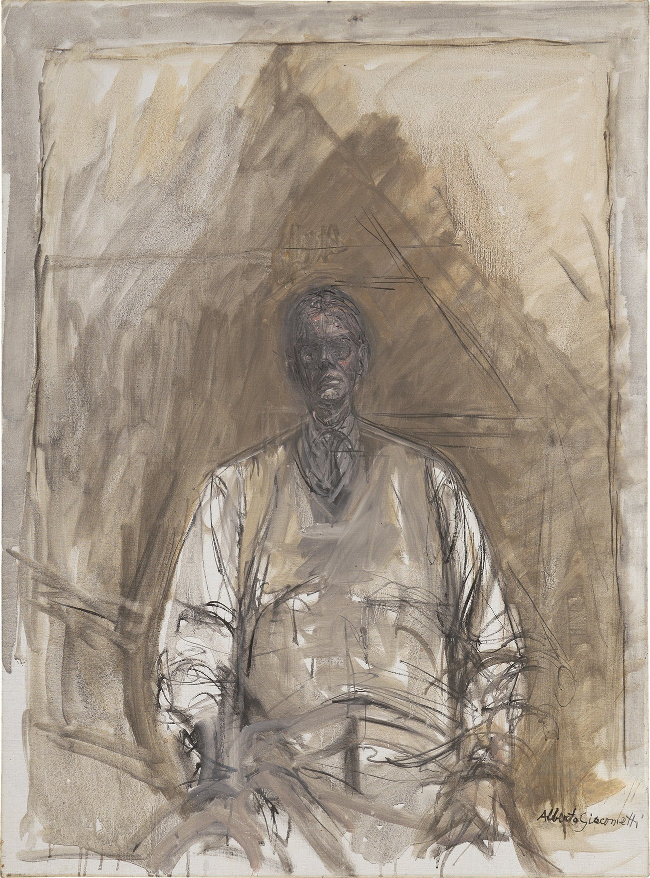 The sitter—a Pittsburgh steel magnate who owned more than a hundred paintings, sculptures, and drawings by the artist—compiled what was quite possibly the largest private collection ever of Giacometti’s work, all acquired between the late 1940s and 1950s. Dedicated to his mission of amassing masterworks of modernism, Thompson sought out the best Giacometti works on the market, buying from auction or from the artist’s dealers such as Aimé Maeght and Pierre Matisse. Thompson also frequently visited Giacometti at his atelier in Paris in the 1950s, establishing a direct exchange between the two which culminated in the execution of two pairs of commissioned portraits in 1955 and 1957. The first two paintings are smaller, subtly polychromatic busts of Thompson while the two from 1957, including the present work, are larger scale and executed in Giacometti’s idiosyncratic sweeping strokes of ochre, black, and white. The great Swiss art dealer Ernst Beyeler acquired Thompson’s collection in 1962, which in 1965 became the Alberto Giacometti Foundation; the second portrait from 1957 is still owned by the foundation and is housed in the Kunsthaus Zürich to this day.