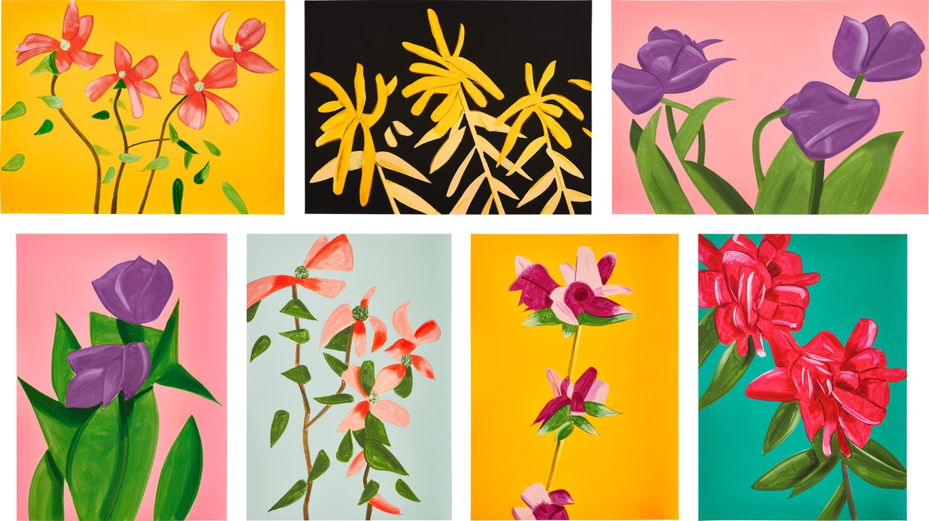 Including: Red Dogwood I; Goldenrod; Purple Tulips I; Purple Tulips II; Red Dogwood II; Azaleas on Yellow and Peonies
