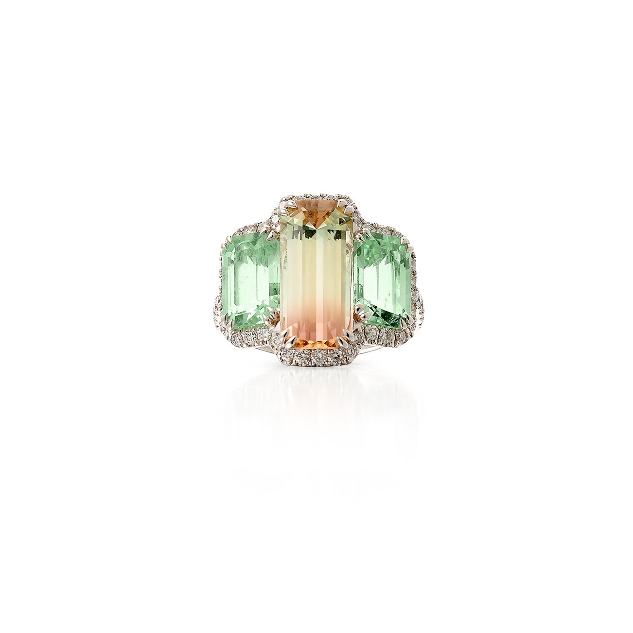 Tourmaline, bi-colour tourmaline and diamond ring