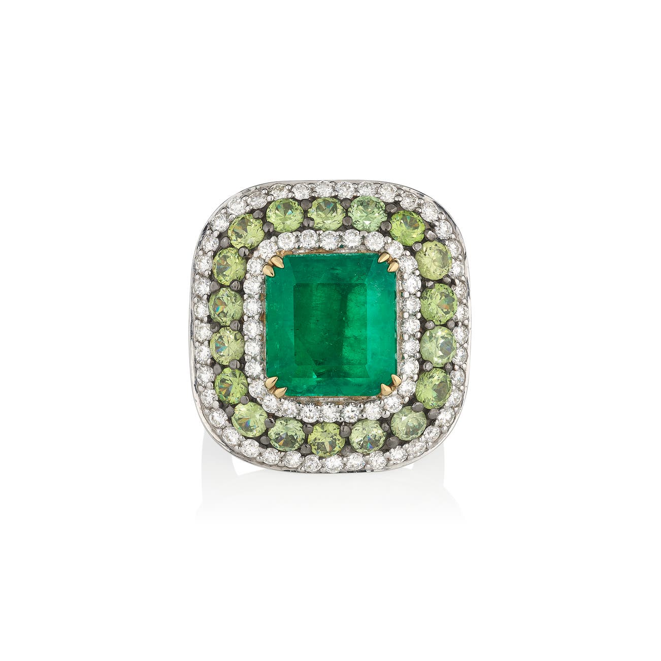 7.94克拉祖母綠、翠榴石配鑽石戒指,Alexander Laut