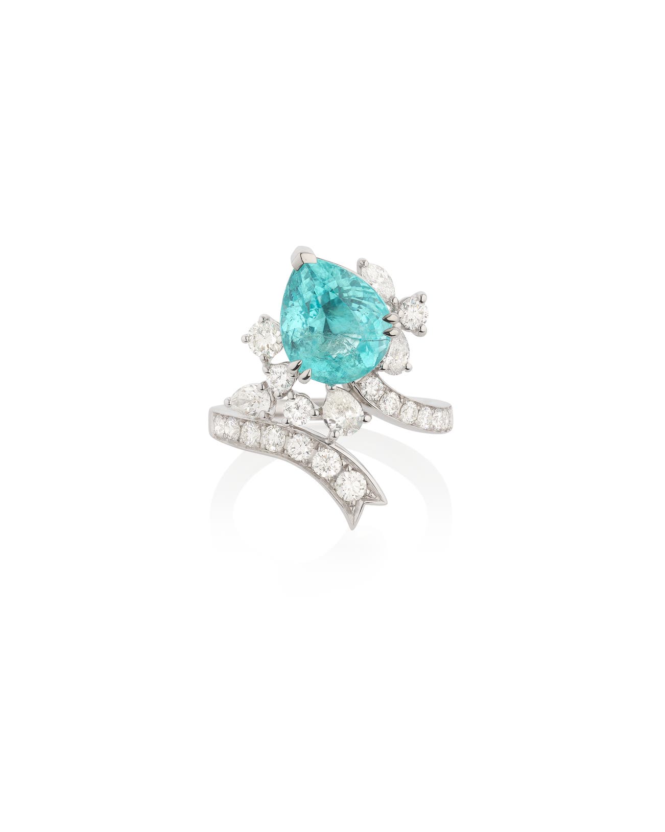 Set with a pear-shaped Paraiba tourmaline weighing 4.27 carats, embellished with brilliant-cut, pear- and marquise-shaped diamonds, size 54½, signed Laut for Alexander Laut, numbered.