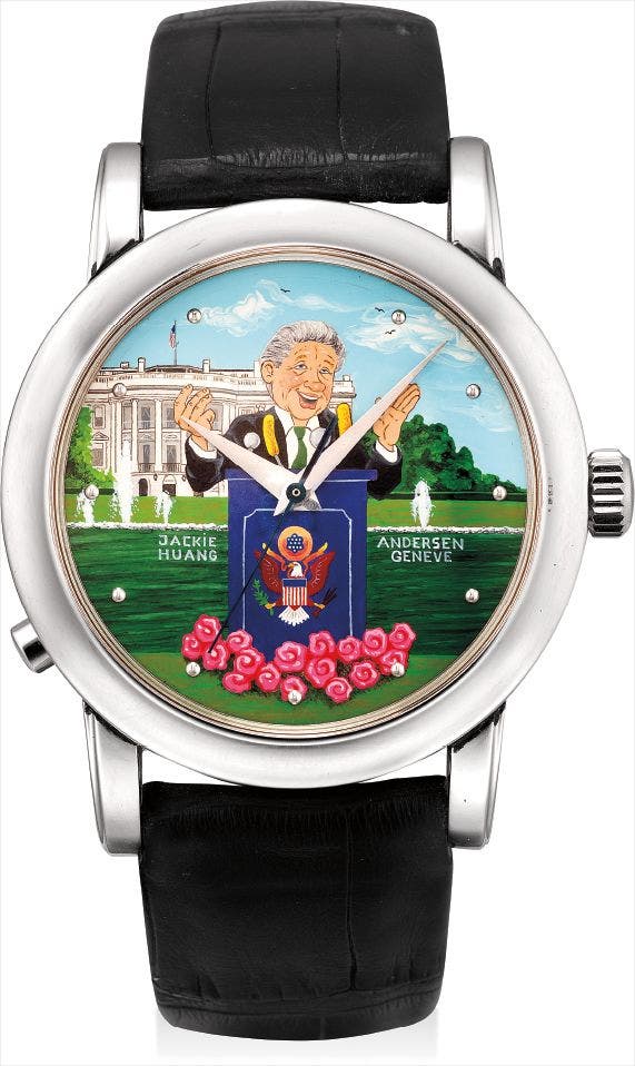 Anderson,精細及獨特,鉑金腕錶,配中心秒針、琺瑯錶盤及隱藏式春宮活動人偶,“Eros President's Pleasure”,約2000年製