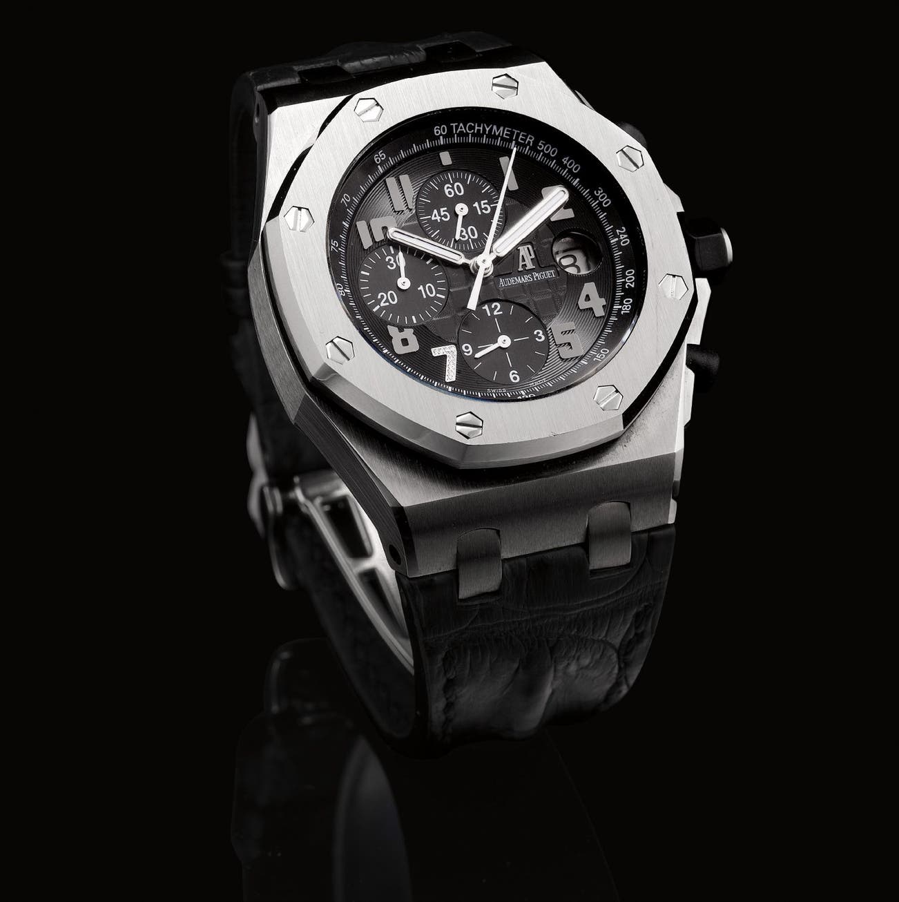 愛彼,精細及罕有,不銹鋼鑲鑽石自動上弦腕錶,配計時功能、日曆顯示,“Royal Oak Offshore”,型號26132ST.OO.A100CR.01,限量生產,為紀念愛彼於日本銀座分店開幕,於約2008年製