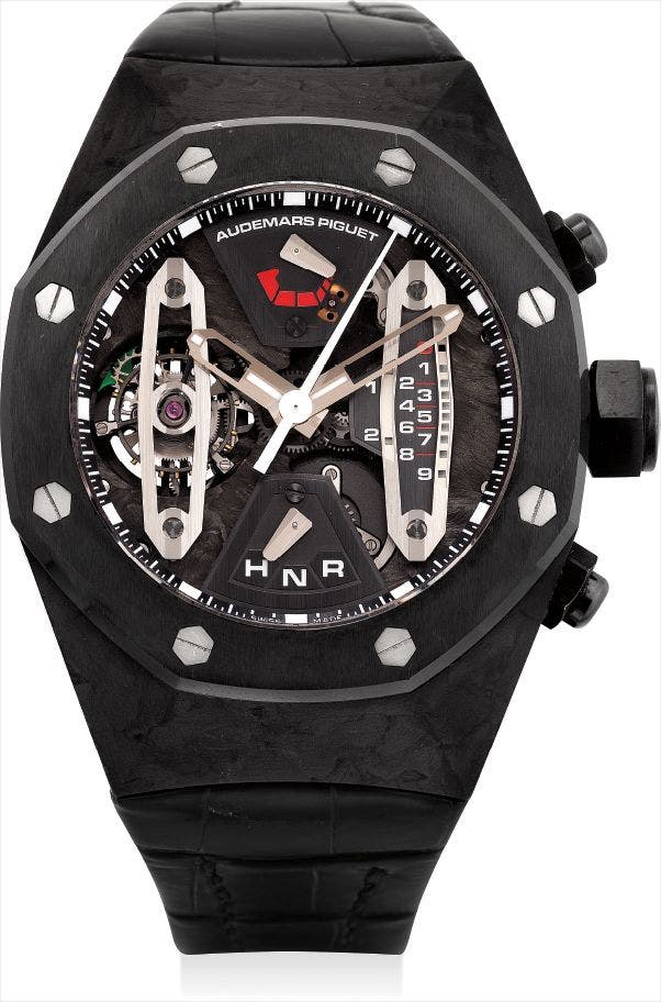 愛彼,非常精細及罕有,鍛碳鋼、鈦金屬及陶瓷鏤空腕錶,配陀飛輪、計時功能及動力儲存,“Royal Oak Concept”,型號CCW 1,附證書及盒子,約2009年製