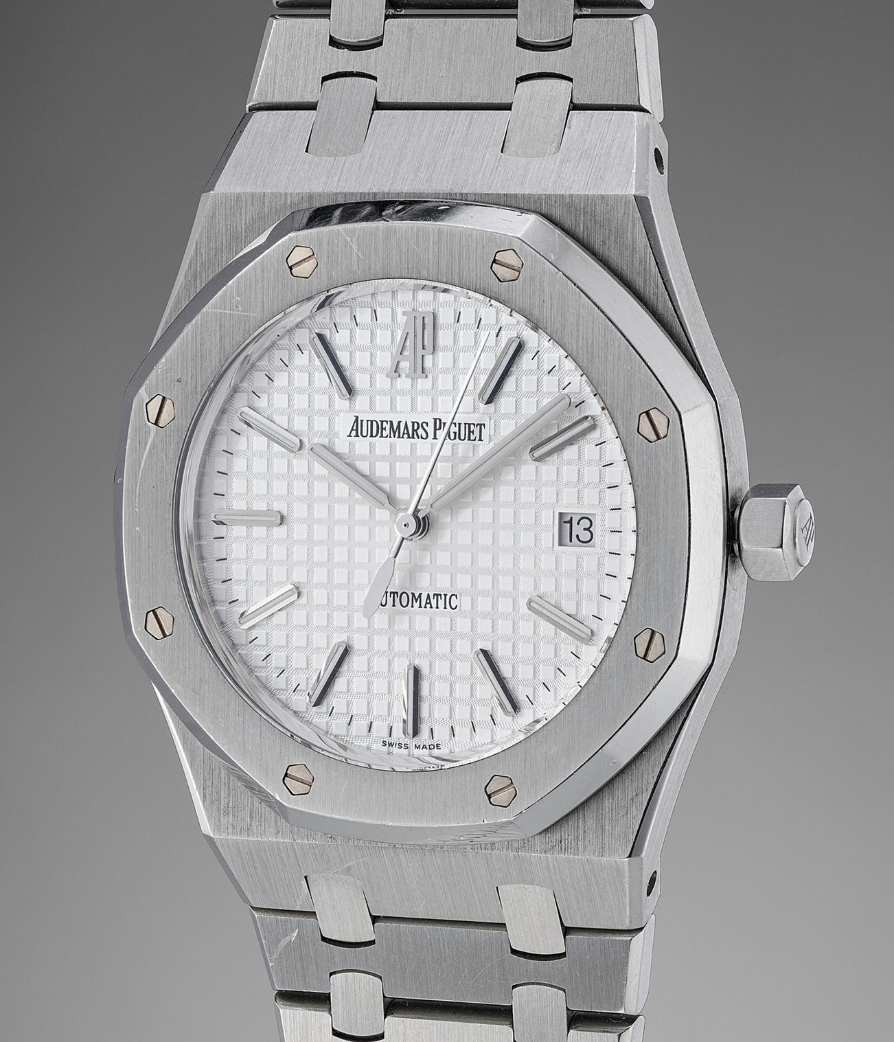 In the early 2000s, Audemars Piguet introduced the present reference 15300, a Royal Oak housing an in-house movement, caliber 3120, for the very first time. This new automatic movement was a superbly conceived and well-executed caliber with numerous novel features including a sixty-hour power reserve relying on only one barrel, a Gyromax balance held in place via a bridge and not a cock and a date mechanism equipped with a safety system preventing the date disk from blocking if the owner tries to manually reset the date at midnight.