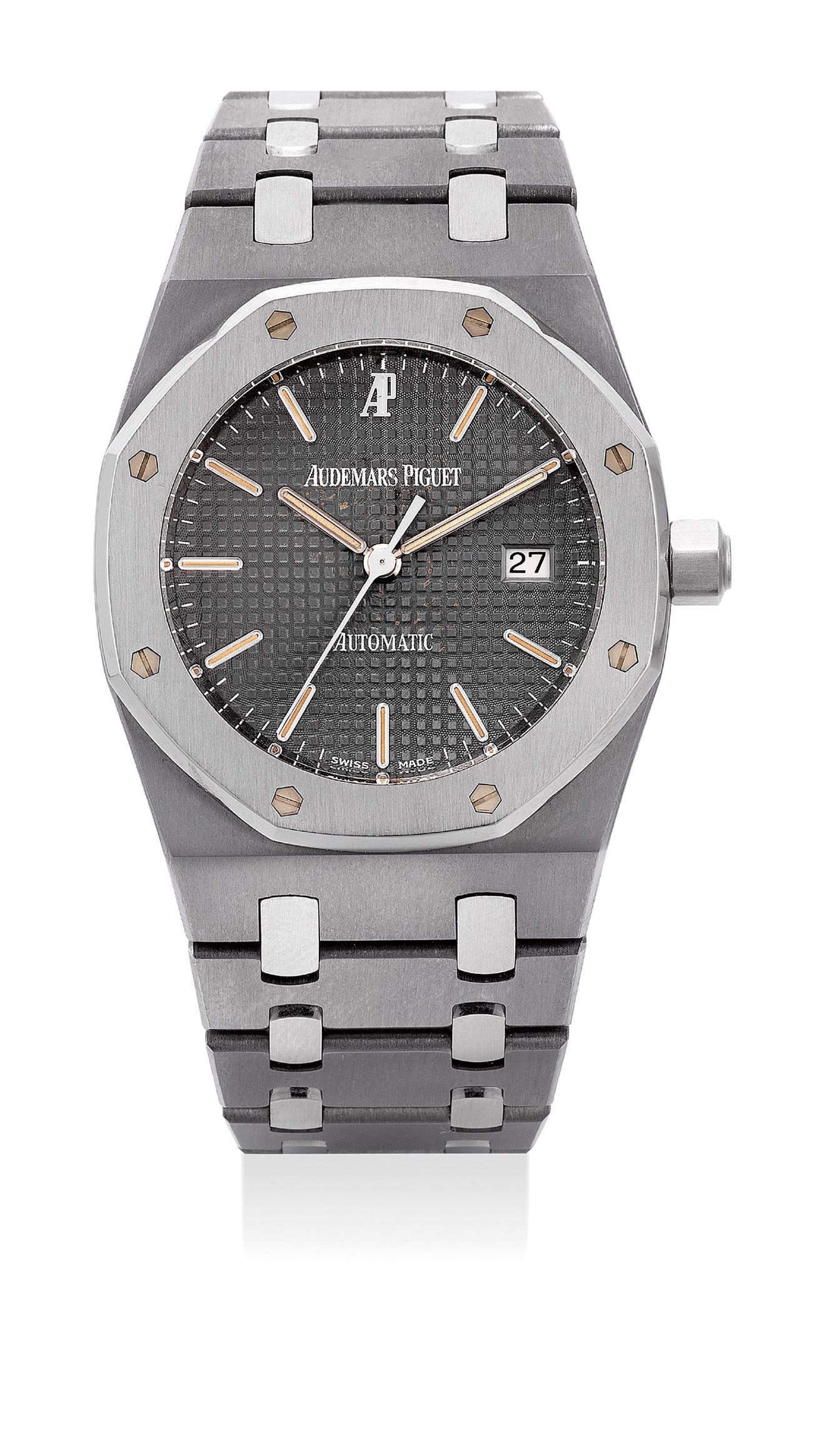 愛彼,「皇家橡樹」型號1500TT,精細及罕有,鉭金屬和精鋼自動上弦鏈帶腕錶,配中心秒針和日期,1997年製。附後補證書