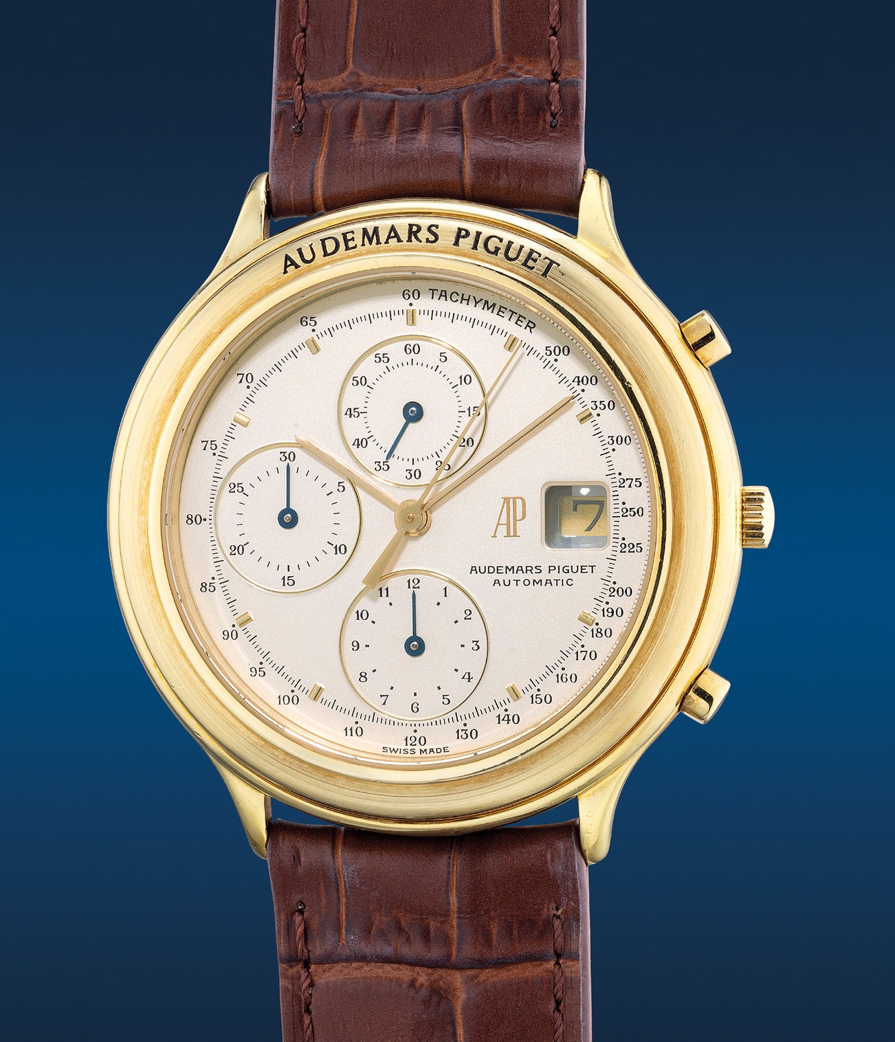 愛彼,「Huitieme Chronograph」型號25644BA.OO.A003XX.01,精細,黃金自動計時腕錶,備日期顯示,1986年製。附後補證書