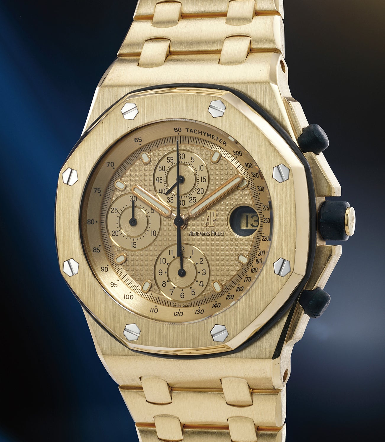 愛彼,重要罕有,黃金大型計時鏈帶腕錶,備日期顯示、香檳金色錶盤。附證書