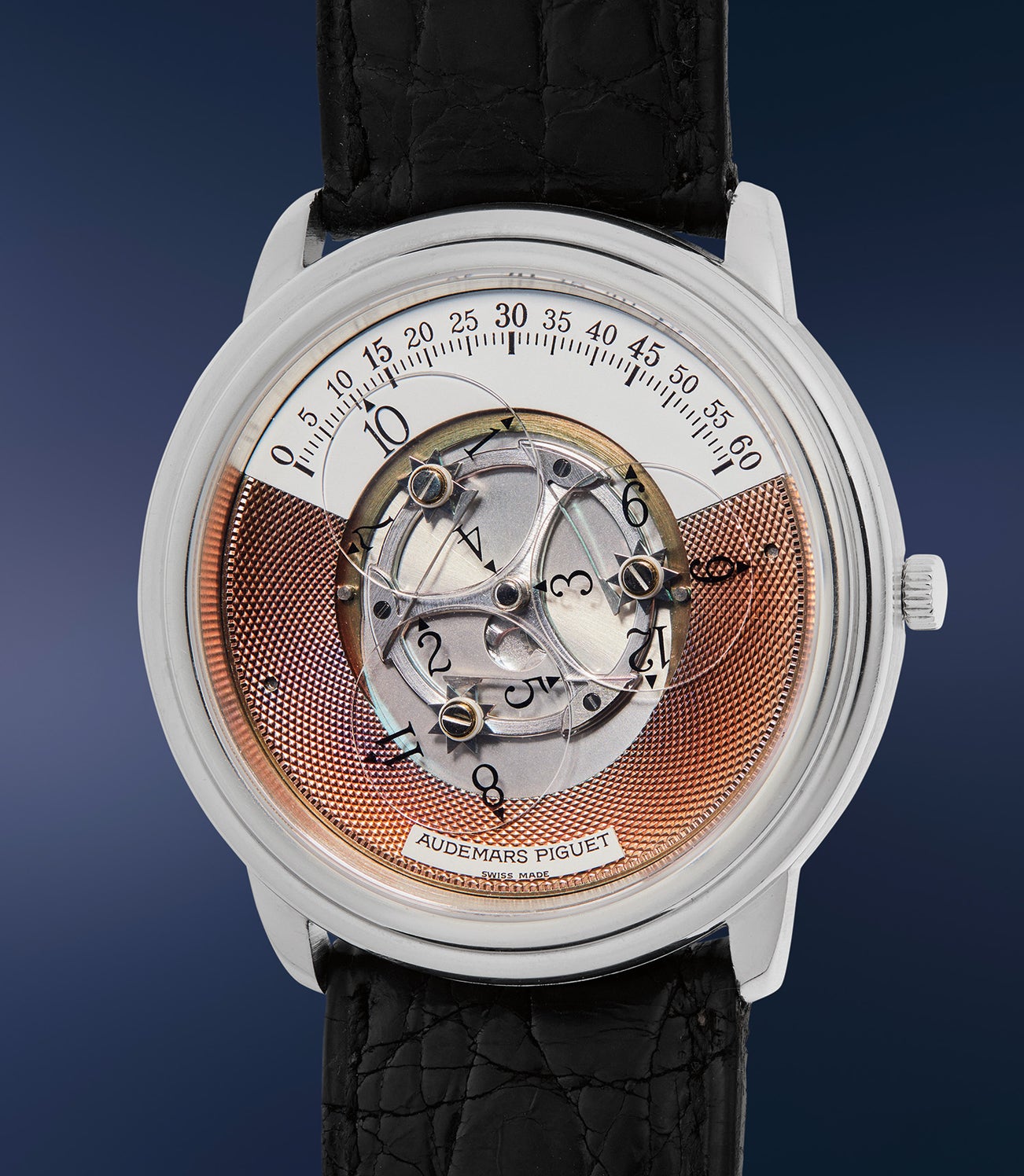 愛彼,非常精細,鉑金腕錶,備轉動式衛星時間顯示。