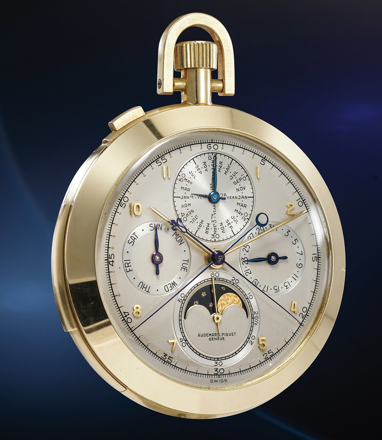 愛彼,非常罕有精美,黃金三問萬年曆懷錶,備追針計時功能、月相顯示。