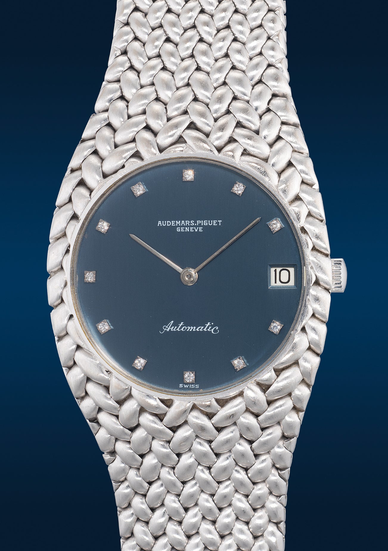 愛彼,「Cobra」型號5403BC, 精細罕有,白金自動鏈帶腕錶,備鑽石時標、日期顯示,1974年製。附後補證書