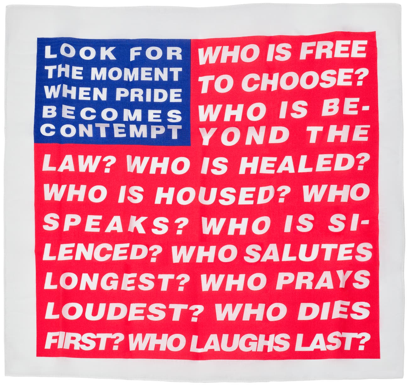 Screenprint in colours, on cotton, folded (as issued), with leaflet, all contained in the original black paper envelope.
