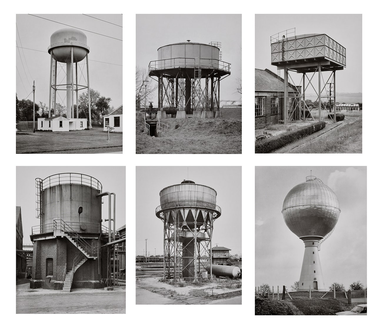 GermanHusband and wife Bernd and Hilla Becher began photographing buildings and relics of the Industrial Revolution, such as coal mines and cooling towers, in 1959. Like objective scientists removing a specimen from the field, the Bechers framed their subject in a manner that isolated it from its environment. Often, these stark, beautifully detailed prints were then displayed in grid-like structures, forming stunning 'Typologies'.