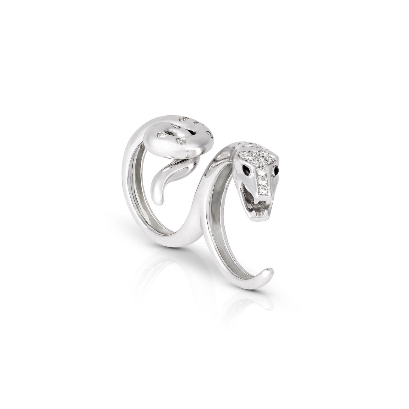 Designed as a coiled snake to be worn across two fingers, highlighted with brilliant-cut diamonds, eyes applied with enamel, size 50 and 52, signed Boucheron, numbered, maker's mark for Boucheron and French assay mark for gold.