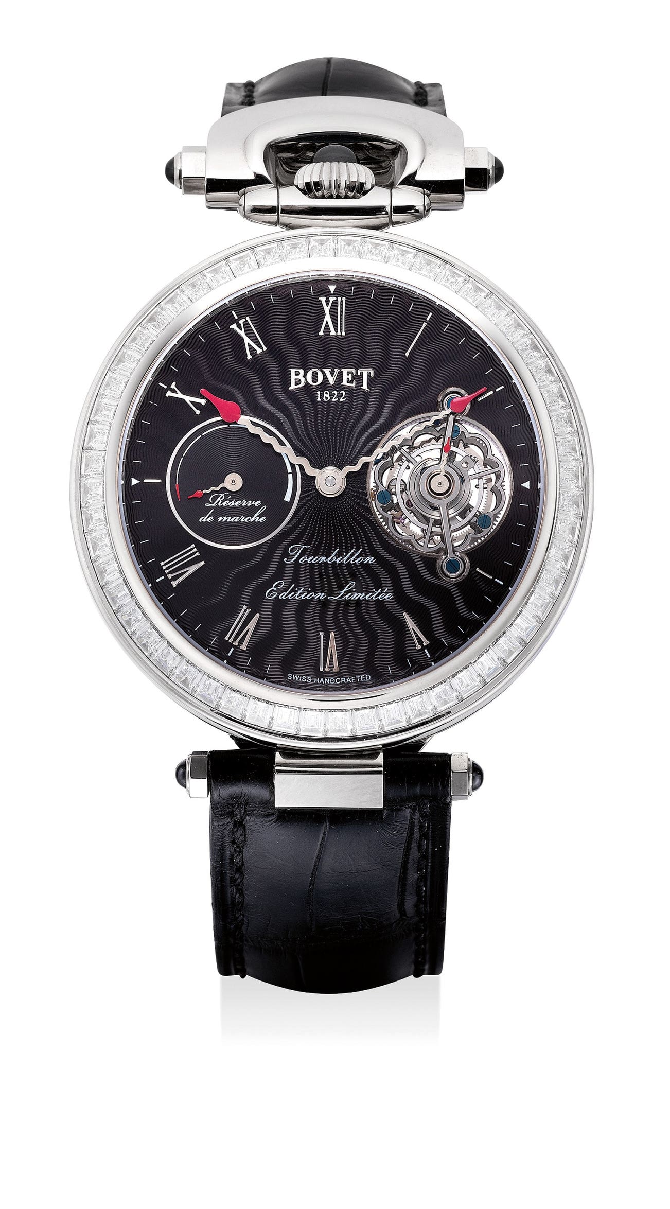 Swiss | 1822The firm Bovet 1822 has a rich, centuries-long history beginning when Edouard Bovet sold four decorative pocket watches in Canton Asia for what would today equal $1 million. By 1822, Edouard, with his brothers, registered the company in London, which at the time was an important center for watches and clocks. That same year, they moved their manufacturing center to the Swiss municipality Fleurier. Bovet became known for their highly decorative pocket watches for the Chinese market. Their richly engraved movements were so important to the watch that Bovet created the concept of the transparent watch back so owners could see the beauty of the movement. Bovet's oversized chronograph wristwatches, such as the Mono Rattrapante chronograph, are especially sought-after. Today, the firm continues their tradition of exquisitely enameled watches.