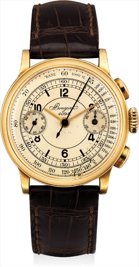 寶璣,精細及罕有,18K黃金腕錶,配計時功能,約1941年製