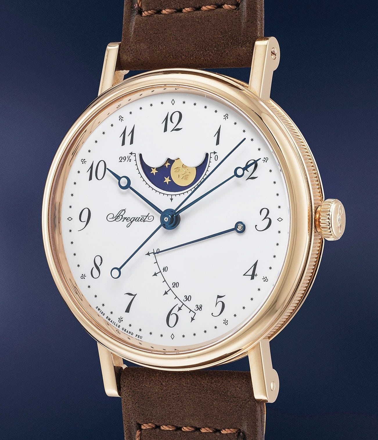 The present timepiece represents a wonderful example of how this century-long tradition of excellence is upheld today, imbued with modern aesthetics, but always true to its roots. Specifically, the exquisite “grand feu” enamel dial follows the aesthetic canons of early Breguet timepieces (most notably, the unusual five minute markers and - obviously - the Breguet numerals); the case as well maintains the ribbed band and lugs design which are typical of Breguet’s style, but offers these detail in a modern 39.5mm incarnation.