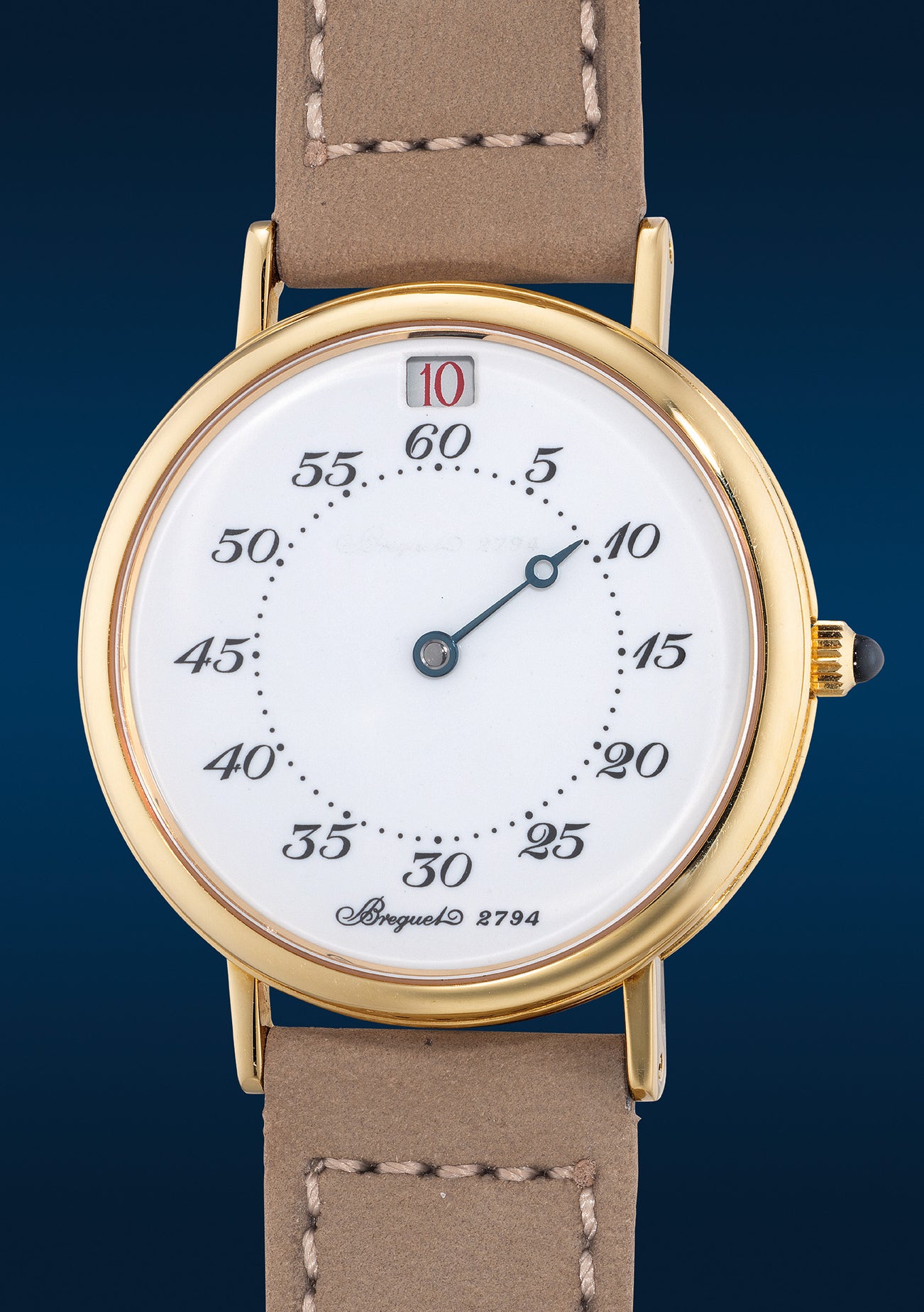 Preserved in excellent condition, and accompanied by the original Breguet certificate of origin dated December 1992 and stamped Friedrich Haute Joaillerie, Frankfurt, the present timepiece, numbered 260 of a limited edition of 800 pieces, is a most charming and unusual early example epitomizing the subtle and supremely elegant Breguet design.
