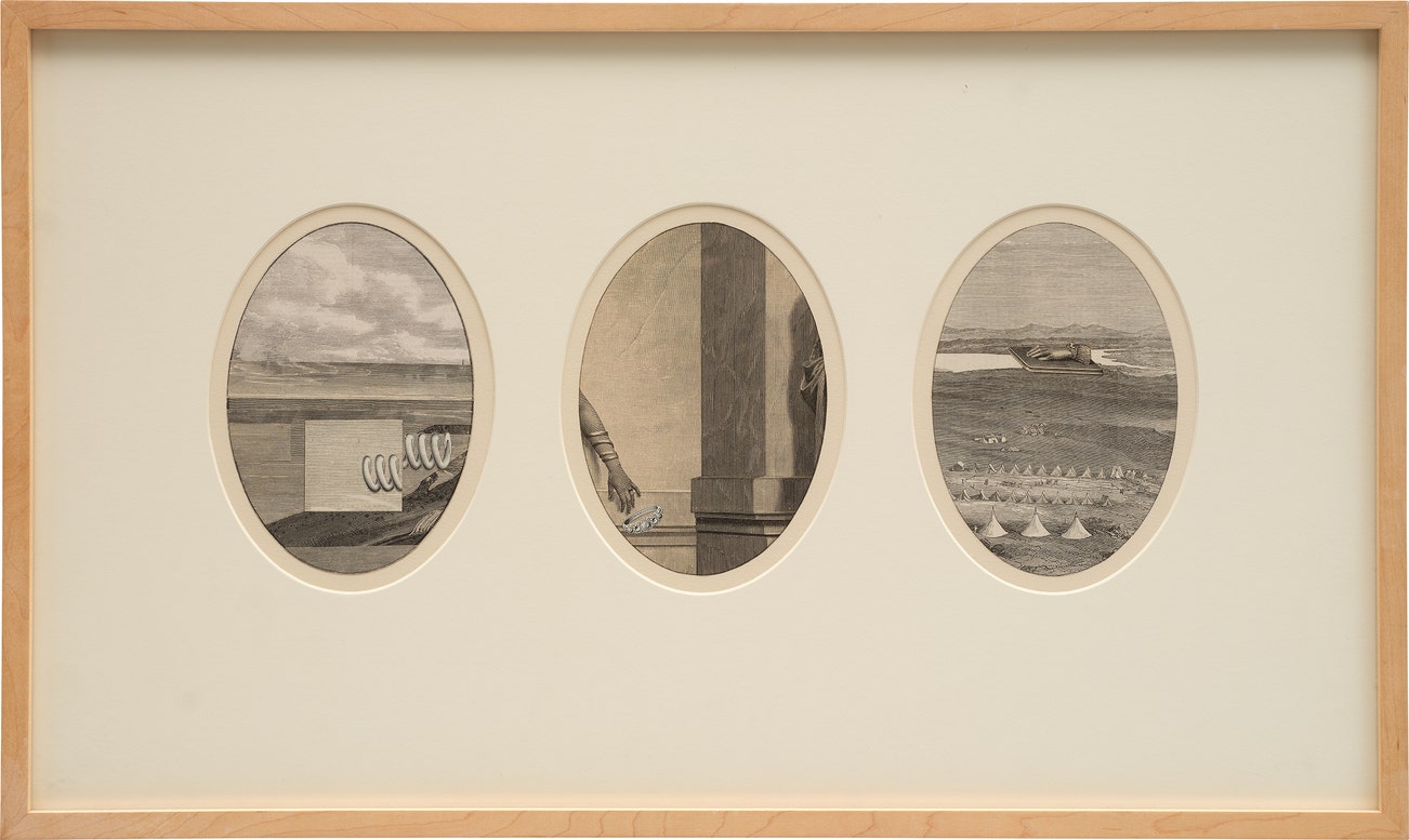 signed and dated "5/10/1987 Bruce Conner" on the reverse of the left sheet; signed, titled and dated "DISENGAGEMENT 1987 5/4/1987 Bruce Conner" on the reverse of the center sheet; signed and dated "4/27/1987 Bruce Conner" on the reverse of the right sheet