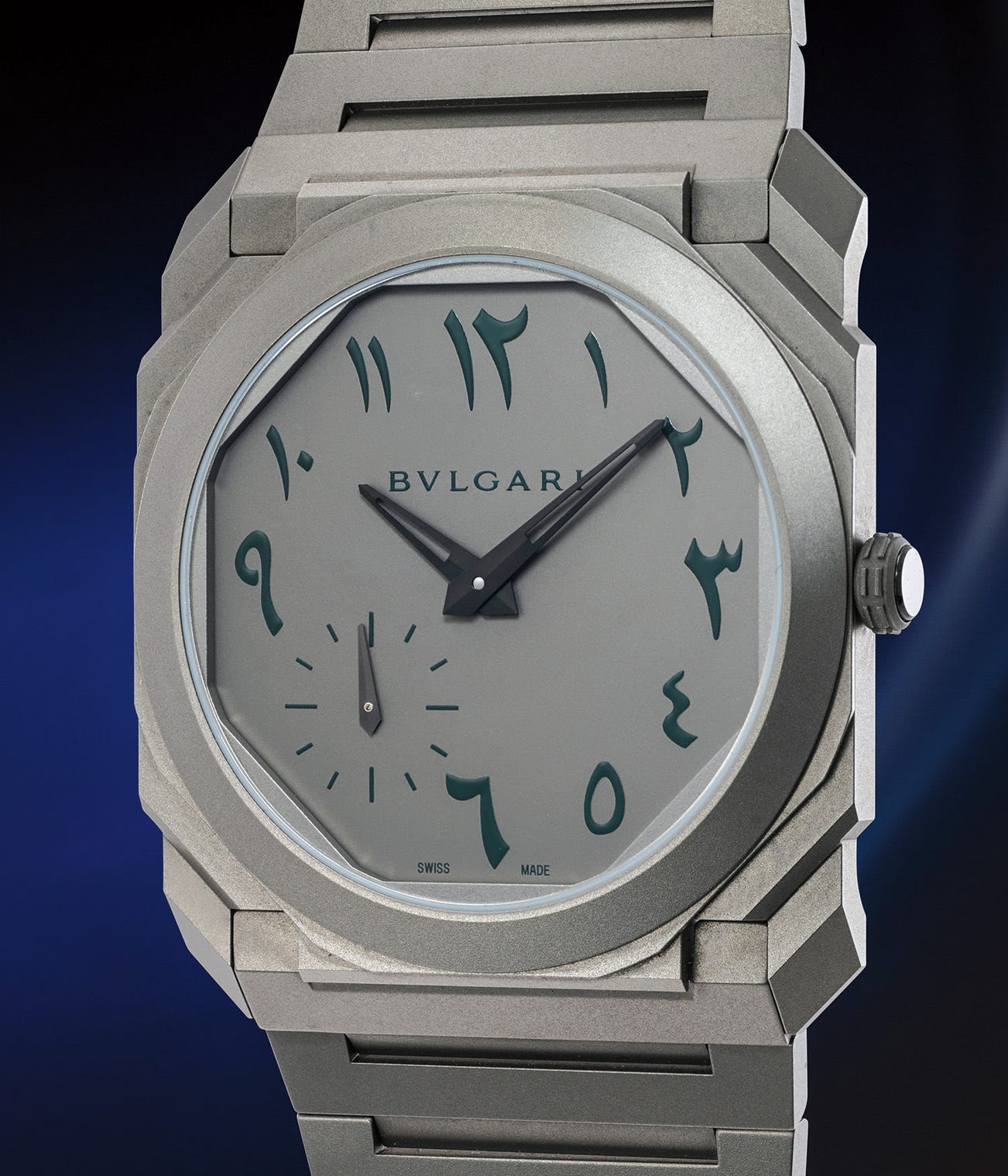 寶格麗,非常精細,超薄鈦金鏈帶腕錶,備東阿拉伯數字錶盤,特為中東市場製造。附保證書及錶盒