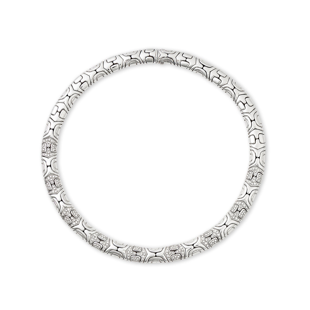 In 1884, Bulgari opened its doors to the Italian people with its offering of jewelry and accessories. Bulgari's style takes from traditions in Greek and Roman craftsmanship to elegantly balance volume and subtlety. Later, in the late 1960s, Bulgari bridged classicism and modernity by introducing its seductive, now-iconic Serpenti collection of snake-shaped coil bracelets and watches. It is through its meticulous combination of influences that Bulgari has garnered an international and loyal high-profile clientele, which included Elizabeth Taylor and Audrey Hepburn. These Hollywood stars have immortalized the house's unique gem-adorned bracelets, necklaces and earrings in rounded forms.