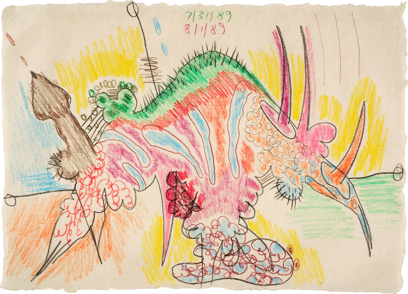 American | 1949Satire and sexuality meet Carroll Dunham's vivid brush in the artist's often large-scale fantasy worlds. His eye-popping cartoonish veneer takes a cue from Philip Guston while his primitive "visual language" of faceless figures continues a long line of tradition—think back to Paul Cézanne and Pierre-Auguste Renoir.