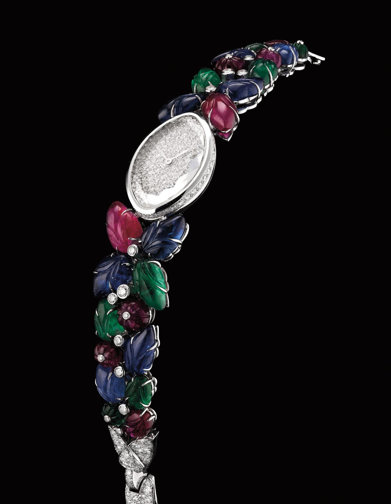 卡地亞,極罕有,18K白金鑲多色寶石石英鏈帶腕錶,約2008年製