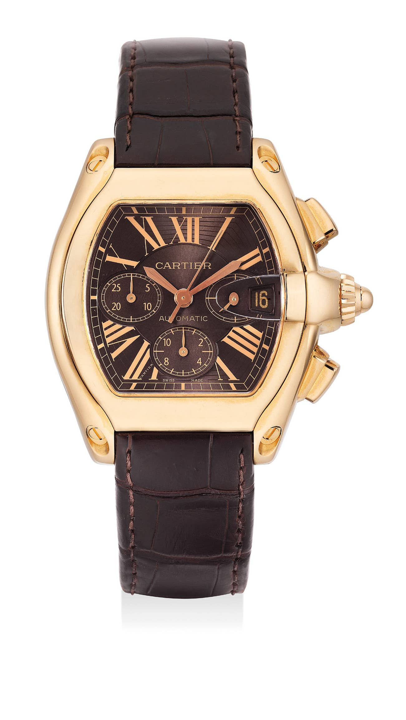 卡地亞,「Roadster」型號2848,18K玫瑰金自動上弦腕錶,配計時功能和日期,約2008年製