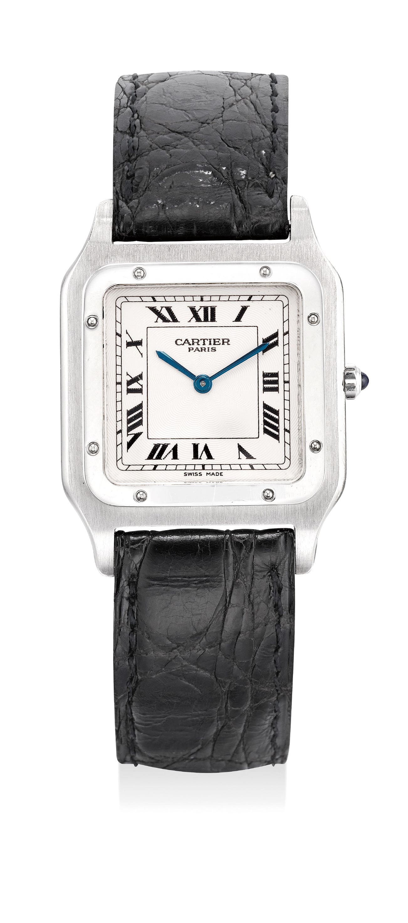 卡地亞,「Santos」型號1575B,精細,鉑金腕錶,約1990年代製。附錶盒、原裝證書、說明書