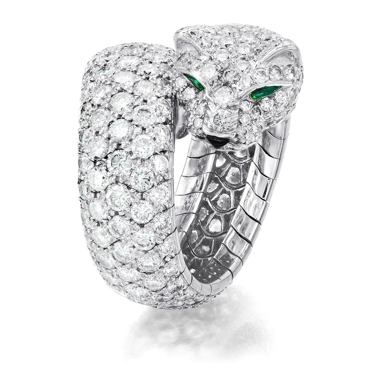 「Panthère Lakarda」鑽石、瑪瑙配祖母綠戒指,卡地亞