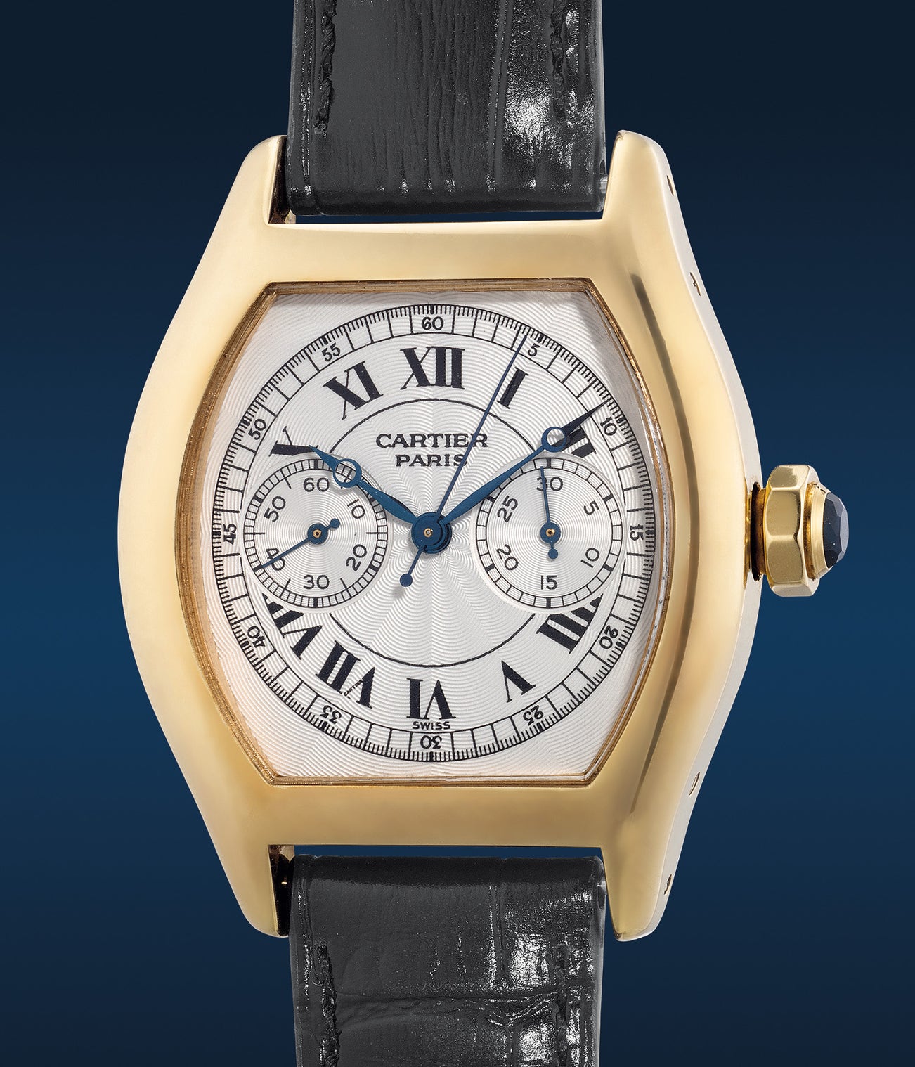 卡地亞,「 Tortue Monopoussoir CPCP」型號2356E,精細罕有,黃金單按鈕計時腕錶,約1999年製