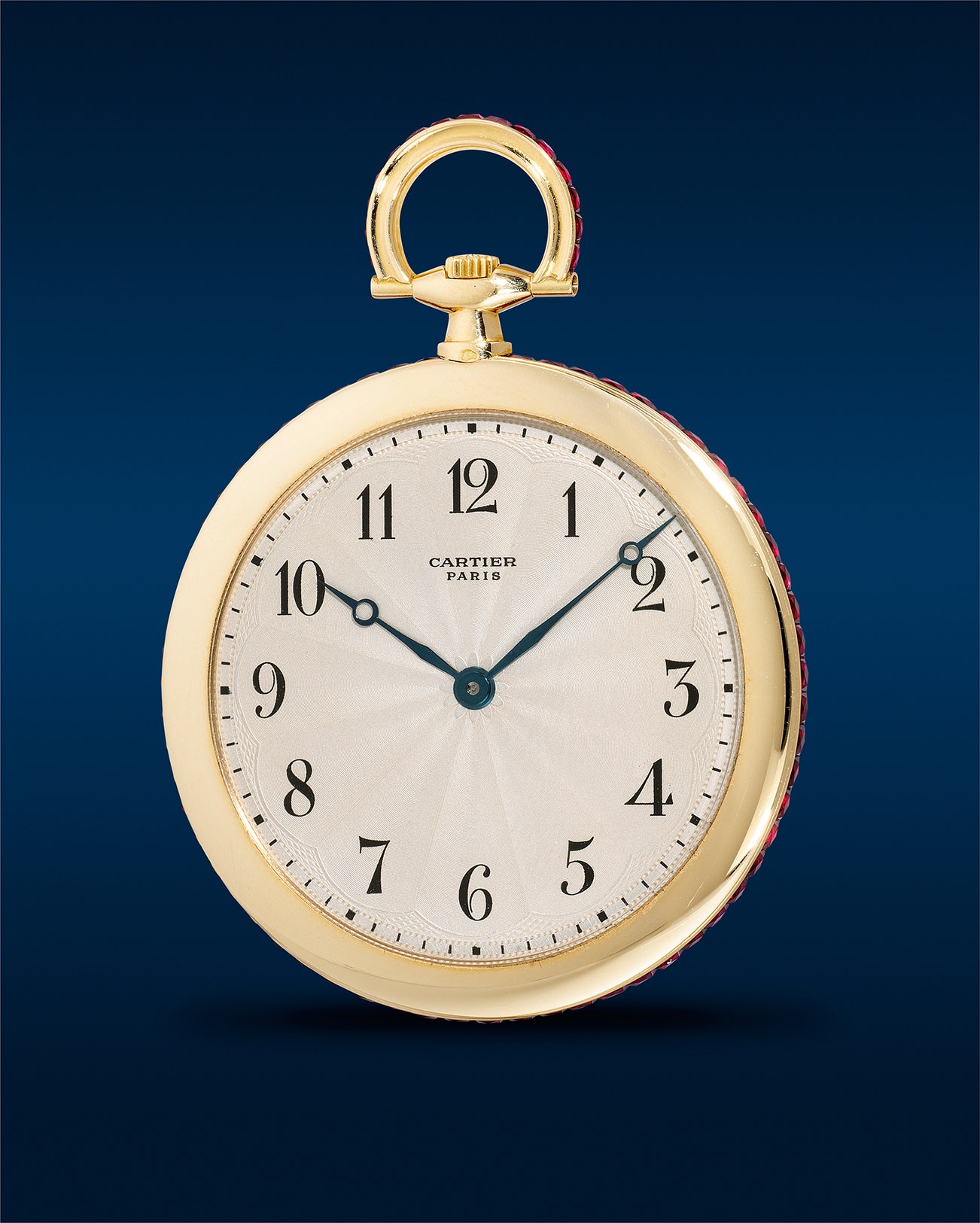 卡地亞,精細罕有,黃金鑲紅寶石懷錶,備璣鏤扭索紋錶盤、 西班牙徽章,1930年代製。附錶盒