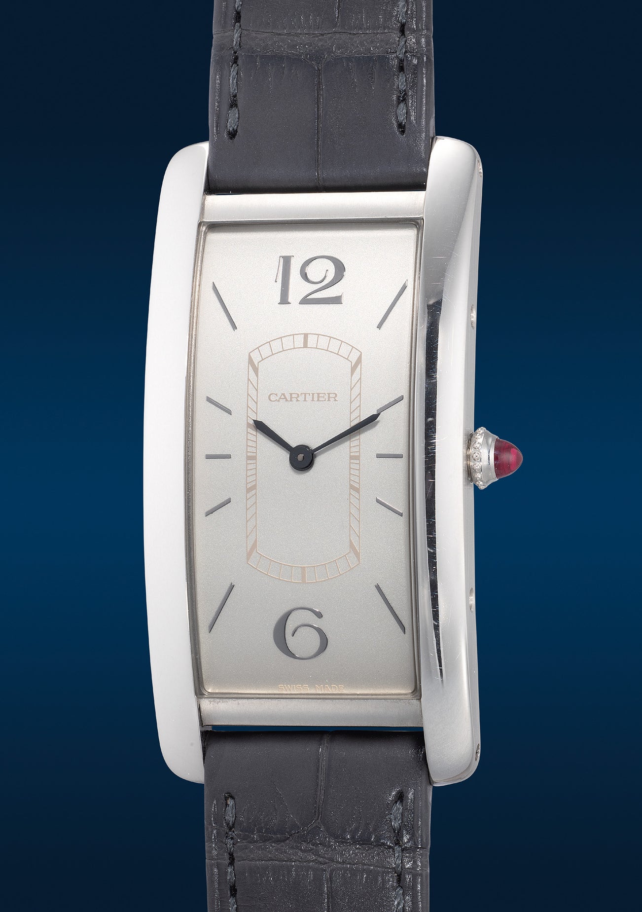 Cartier,「Tank Cintrée」型號 CRWGTA0027,精細罕有,鉑金腕錶,限量發行100枚,編號062號,約2019年製。附原裝證書、錶盒