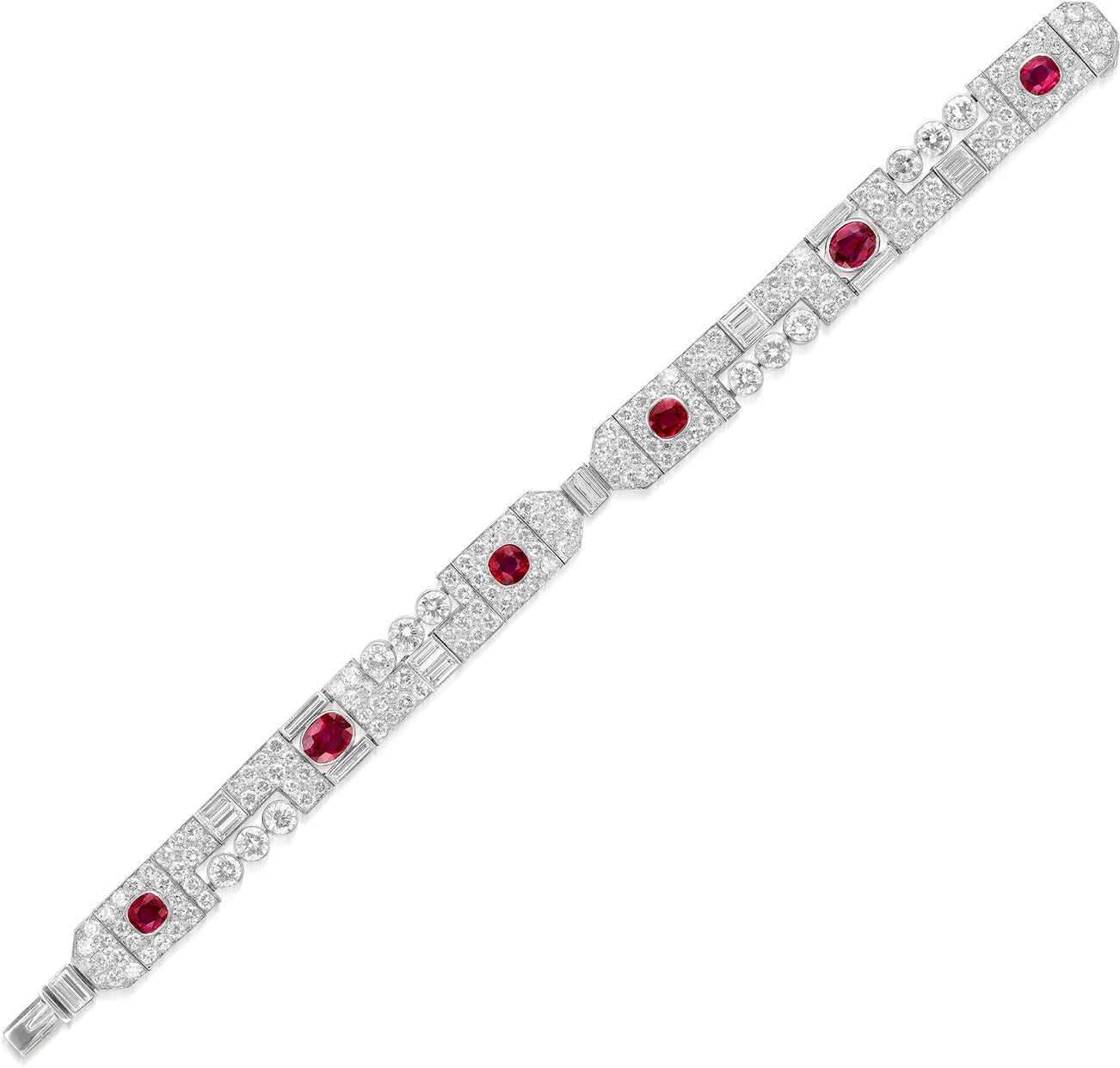 Art Deco「緬甸」天然紅寶石配鑽石手鏈, 紅寶石未經加熱處理, 卡地亞
