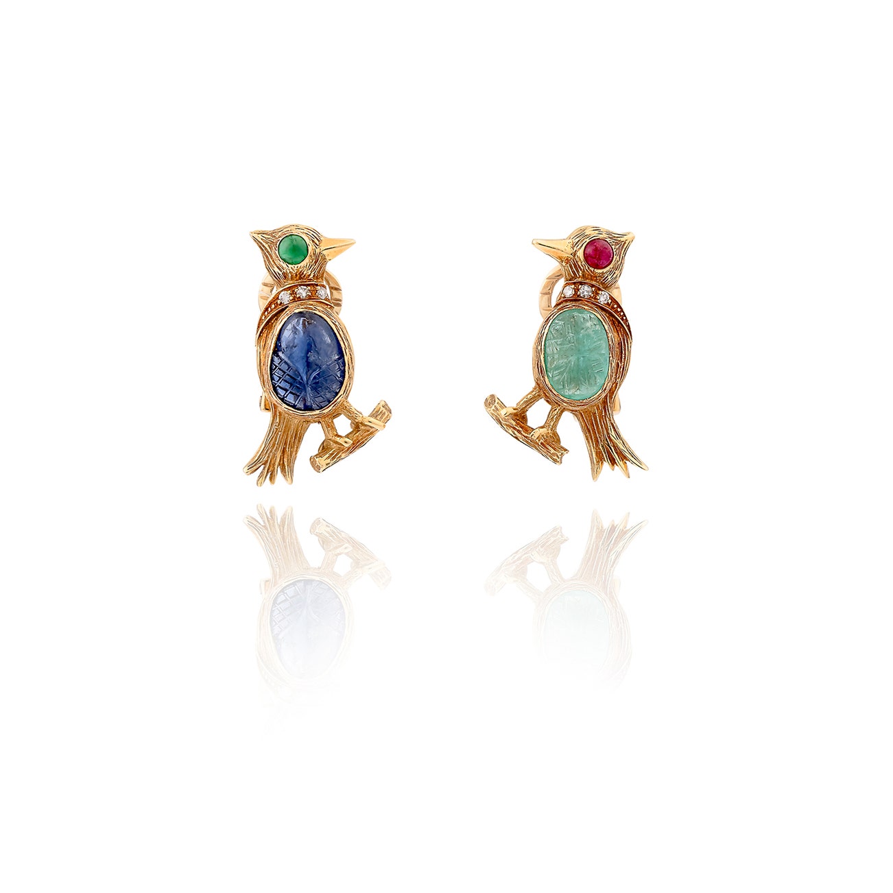 Pair of gem-set and gold ear clips