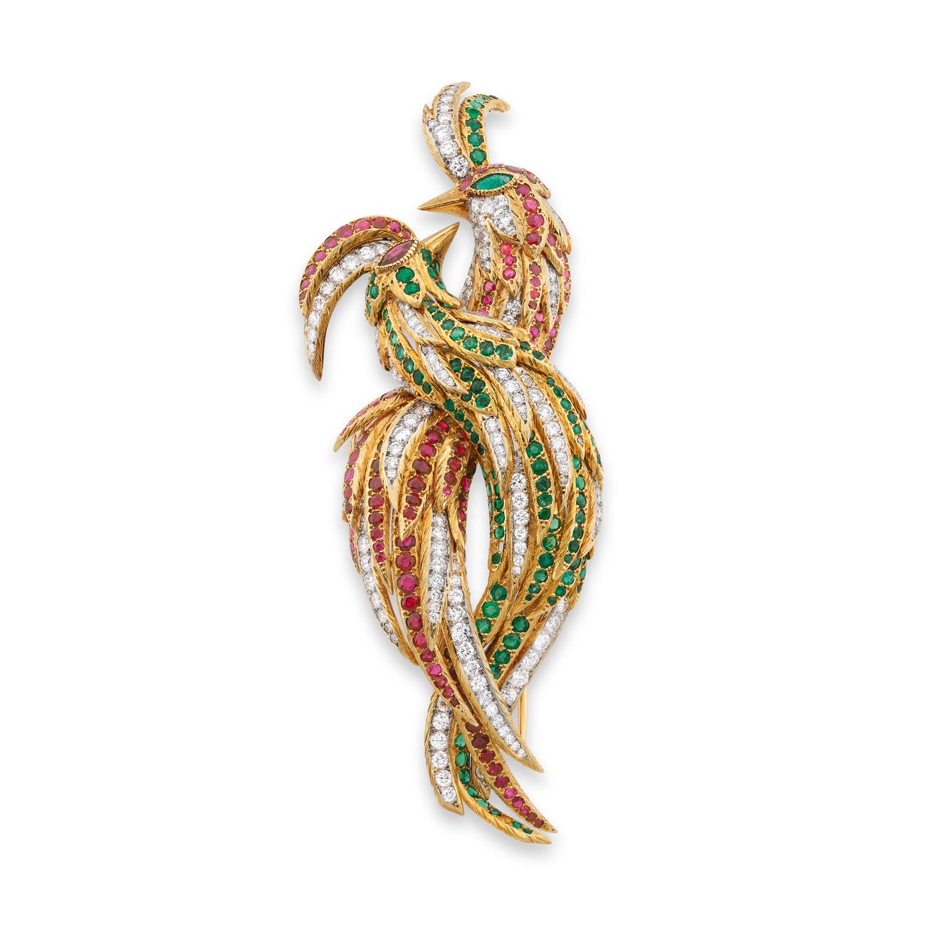 彩色寶石配鑽石胸針,卡地亞,1960年代