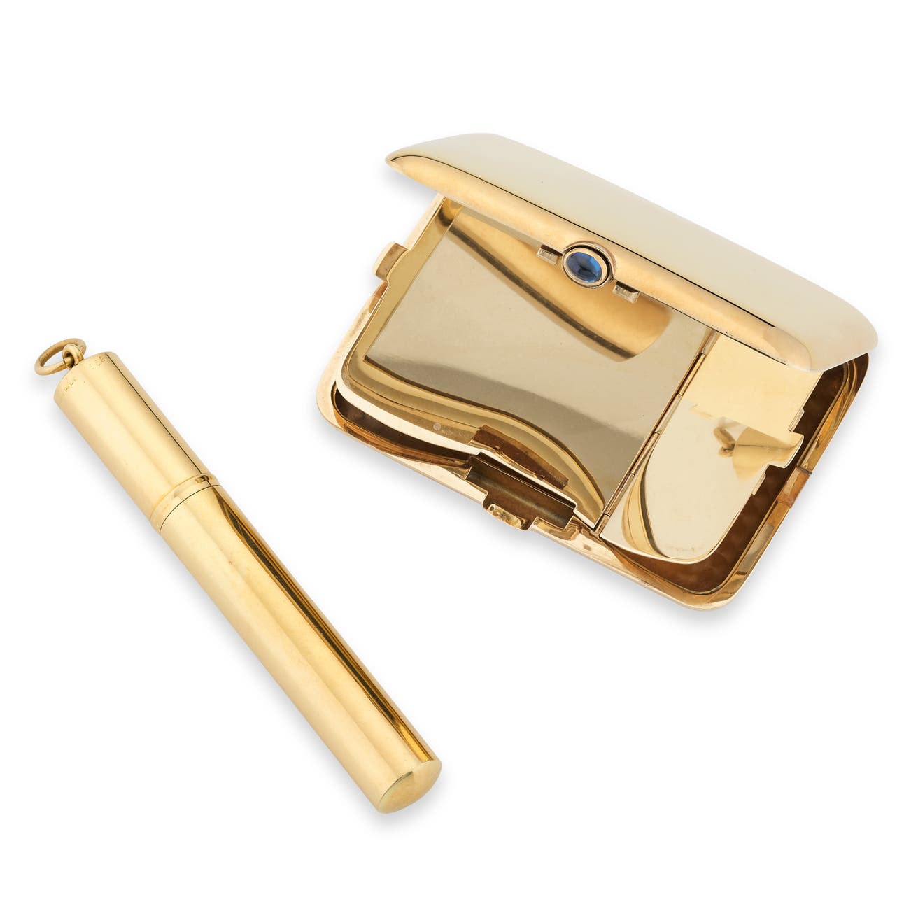 K金配藍寶石粉餅盒與K金打火機,卡地亞
